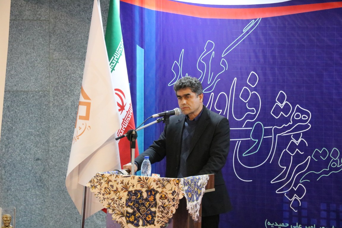 رئیس دانشگاه مراغه با اشاره به بیانات مقام معظم رهبری " اگر کشوری به اهمیت و جایگاه پژوهش پیببرد مطمئناً میتواند پایههای محکم اقتصاد دانش بنیان را به وجود آورد، گفت: نتیجه بخشی در پژوهش زمان بر بوده و حمایت همه جانبه میطلبد. اگر پژوهشگر از آینده مطمئن باشد با اطمینان بیشتر قدم در راستای حل مشکلات کشور برمیدارد.